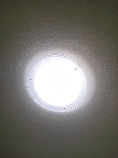 Now that the light is installed it’s nothing short of beautiful. We have three other skylights that are 20 years old and barely put out any light compared to Solatube. Solatube turned a cave of a bathroom in to a bright spot and it’s going to be stunning once it’s all completed thanks to the natural light that is now able to reach this otherwise windowless addition.